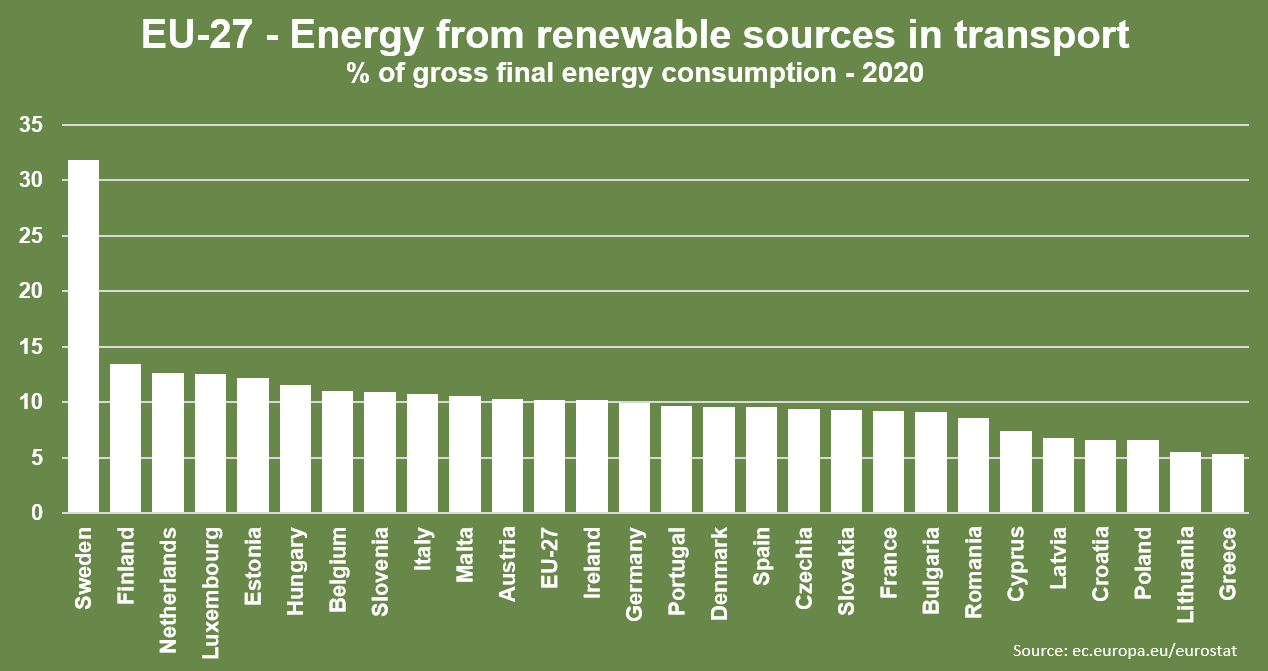 Eurostat data show that the EU has met the objective of 10% share in renewable energy in the transport sector reaching a ratio of 10.2%,